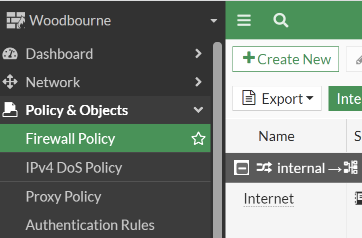 Navigate to 'Policy & Objects' -> 'Firewall Policy' -> 'Create New'