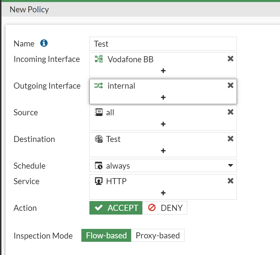 Now you have done the port forward part but we aren't don't yet. We need to create an IP Policy to allow the traffic,