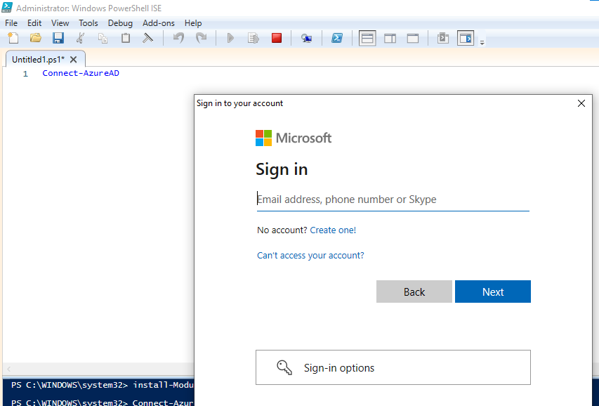 Connect-AzureAD You will get a credentials box popping up, and will take you through MFA.