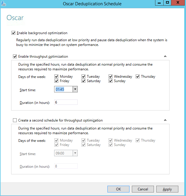The regularity of these tasks is defined in the policies you create when setting up Deduplication and typically the schedule information defaulted in the policies set by Microsoft are adequate. I would really advise against changing these unless you have a specific reason to.